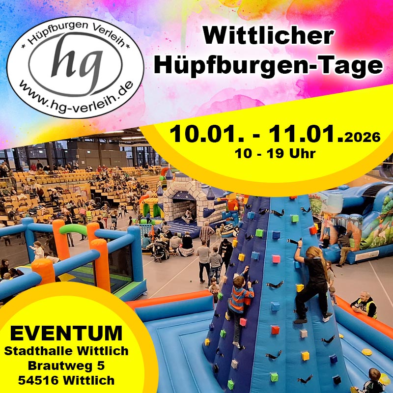 Schon seit einigen Jahren veranstalten wir eigenverantwortlich die „Wittlicher Hüpfburgen Tage“ in unserer Stadthalle, dem EVENTUM.